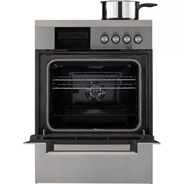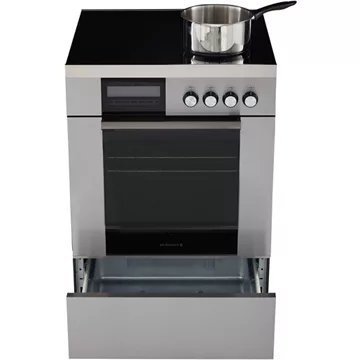 Cette cuisinière vous propose une table de cuisson avec foyers radiants. Ce type de foyer offre une cuisson rapide grâce à des résistances dans un matériau réfracteur : les plaques deviennent chaudes et lumineuses très rapidement. Cela permet d’avoir une répartition optimale de la chaleur sur la plaque, idéale pour faire mijoter des plats ou pour préparer des plats volumineux.