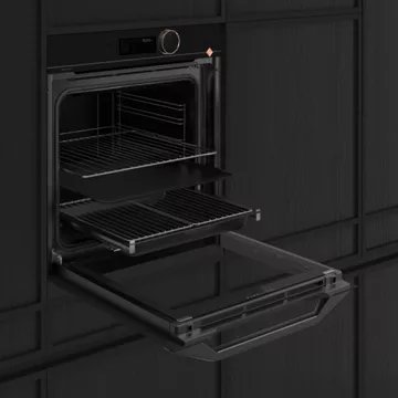- Rails téléscopiques : ils permettent d’accéder à vos plats en les faisant coulisser en dehors de l’enceinte de cuisson en évitant les risques de basculement. Vous pourrez arroser confortablement votre rôti ou retourner facilement vos plats sans risque de brûlure.
