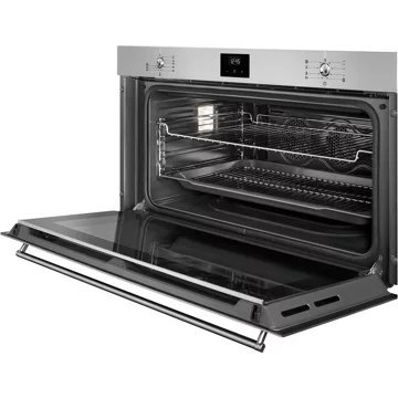- Avantage de la chaleur tournante pulsée : le four est équipé d’un ventilateur et d’une résistance circulaire situées sur la paroi arrière du four, pour une cuisson simultanée de différents plats sur plusieurs niveaux