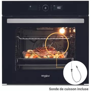 - Sonde de cuisson : la sonde de cuisson permet de surveiller la température à coeur de votre plat. Elle met fin au programme une fois la température atteinte. Vous avez la certitude de réussir vos cuissons même délicates