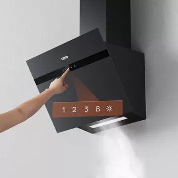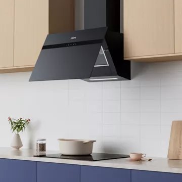 - Type de hotte : décorative murale inclinée, combine style et fonctionnalité. Sa conception permet de mieux gérer l’espace au-dessus de la zone de cuisson. Elle évite de devenir un obstacle dans l’espace de cuisson et n’obstrue pas la vue, rendant plus facile la préparation des plats.