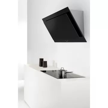 - Type de hotte : décorative murale inclinée, combine style et fonctionnalité. Sa conception permet de mieux gérer l’espace au-dessus de la zone de cuisson. Elle évite de devenir un obstacle dans l’espace de cuisson et n’obstrue pas la vue, rendant plus facile la préparation des plats.