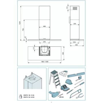 - Largeur : 120 cm, pour une zone de cuisson allant jusqu’à 120 cm de largueur.