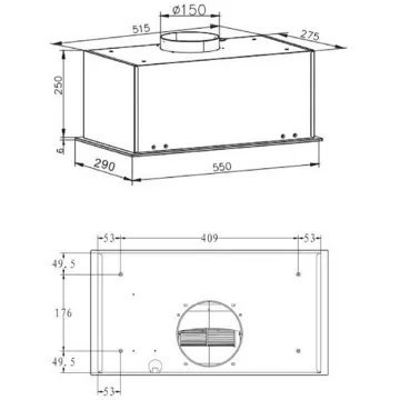 - Type de hotte : encastrable, s’intègre parfaitement dans les armoires, préservant l’esthétique de la cuisine. Elle offre une extraction efficace des fumées et odeurs tout en restant discrète. Son design discret et sa performance font d’elle un choix idéal pour les cuisines modernes soucieuses de leur apparence.