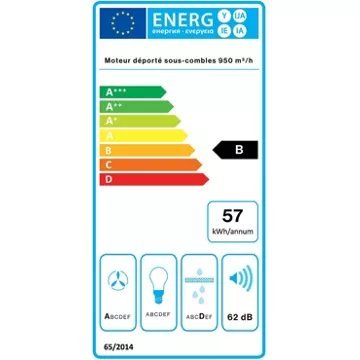 • Moteur décentralisé : oui, offre une solution silencieuse et puissante, libérant de l’espace et permettant une installation flexible. Le moteur décentralisé garantit une extraction efficace des vapeurs de cuisson tout en réduisant le bruit, améliorant ainsi le confort et la fonctionnalité de la cuisine.