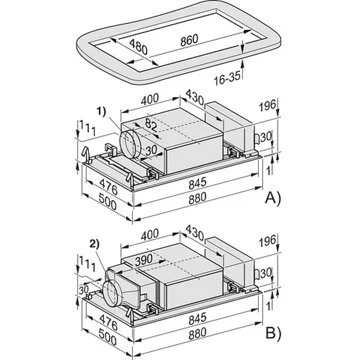 - Largeur : 88 cm, pour une zone de cuisson allant jusqu’à 90 cm de largueur.