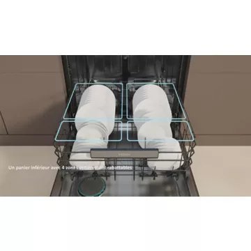 - Tiroir à couverts : Oui, il est placé dans la partie haute du lave-vaisselle et permet de bénéficier de 25% d’espace supplémentaire dans le panier inférieur