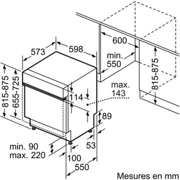 - Pour une niche de (l x h x p) : 60 x 81.5 x 55 cm