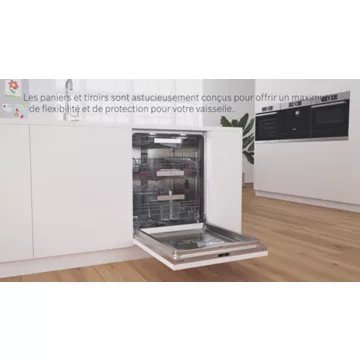- Avantage tout intégrable : Le bandeau de commande est entièrement dissimulé dans la tranche de la porte. Ainsi, le lave-vaisselle tout intégrable est le plus discret de tous les appareils