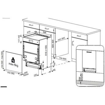 - Type d’ouverture de porte : si votre plinthe mesure 9 cm ou moins, seul un lave vaisselle porte à glissière compatible plinthes basses sera adapté à votre cuisine. Cependant, si votre plinthe mesure plus de 9 cm, tous les systèmes d’ouverture de porte seront compatibles avec votre cuisine.