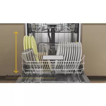 - Avantage du panier supérieur réglable en hauteur : Permet de laver des plats de grandes tailles ou de grands verres à pieds.