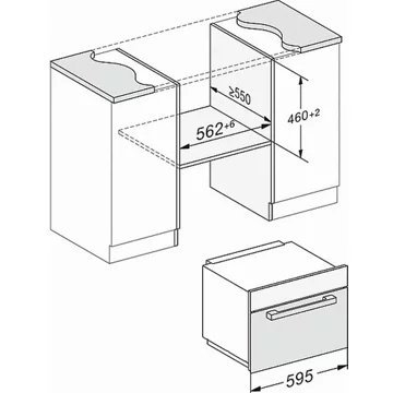 Niche encastrement recommandée : largeur 562–568 mm, hauteur 450–452 mm, profondeur recommandée 550 mm