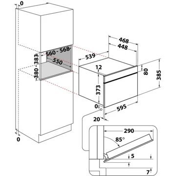 - Hauteur niche d’encastrement : Micro ondes hauteur 38 cm