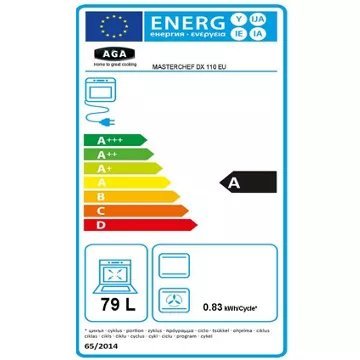 - Valeurs du label énergie : Label énergie A, Consommation en convection naturelle 0,88 kW, Consommation en chaleur tournante 0,83 kW
