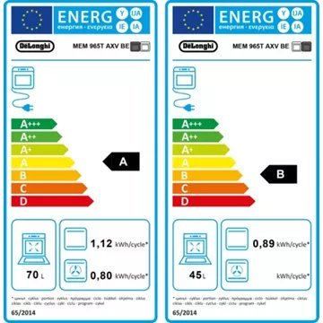 - Valeurs du label énergie : Label énergie A, Consommation en convection naturelle 0,79 kW, Consommation en chaleur tournante 0,84 kW