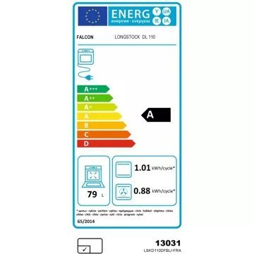 - Valeurs du label énergie : Label énergie A, Consommation en convection naturelle 0,88 kW, Consommation en chaleur tournante 0,83 kW
