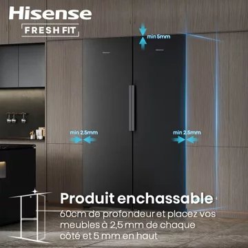 - FreshFit : les meubles et/ou les murs peuvent être placés à moins de 3mm de chaque côté ou en haut du produit, pour une élégante intégration dans votre cuisine.