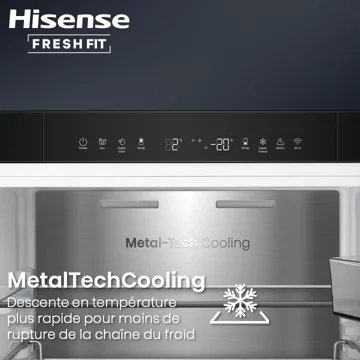 - Froid du réfrigérateur : le froid ventilé permet une répartition du froid de manière homogène et un rangement libre, sans contrainte, des aliments dans le réfrigérateur