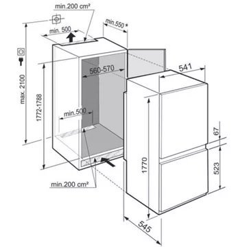 • Dimensions d’encastrement mini l x h x p : 56 x 177.2 x 55 cm