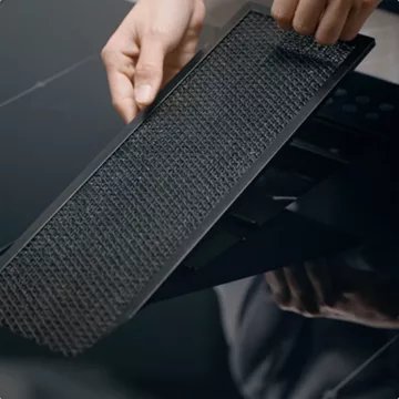 Avec 4 vitesses de ventilation et la fonction Boost, la hotte aspirante offre une aspiration puissante atteignant 500m³/h, tout en maintenant un niveau de bruit aussi bas que 67 dB lorsqu’il fonctionne à pleine puissance.