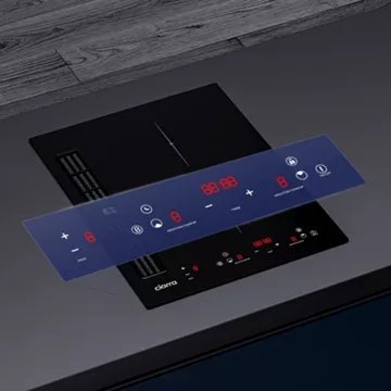 - Type de table : induction avec hotte intégrée, solution pratique et esthétique pour combiner la table de cuisson et la hotte. Elle nécessite un encastrement spécifique (voir infos dimensions).