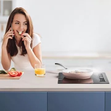 - Démarrage rapide : votre plaque détecte automatiquement l’endroit où la casserolerie est posée et vous permet de choisir la puissance sans devoir sélectionner la zone de cuisson.