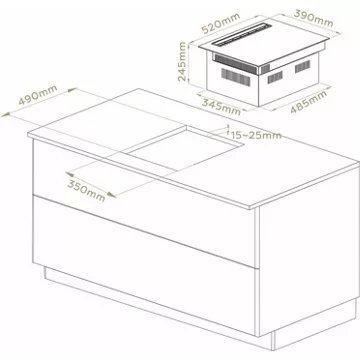 - Installation du kit recyclage sans gaine : permet une installation optimisée de votre table évitant ainsi l’utilisation de gaines et de coudes. L’extraction de l’air se fait directement dans le vide sanitaire de votre meuble.