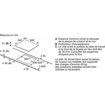 - LxHxP (encastrement) : 56 x 50 x 5.1 cm