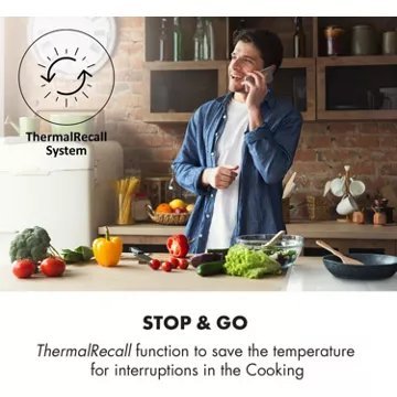 - Sécurités : arrêt automatique, anti surchauffe, verrouillage du clavier, témoin de chaleur résiduelle, détection d’absence de récipient, témoin de mise sous tension
